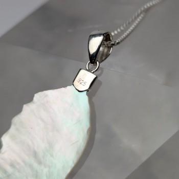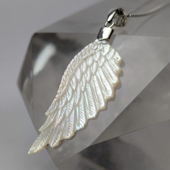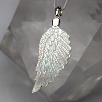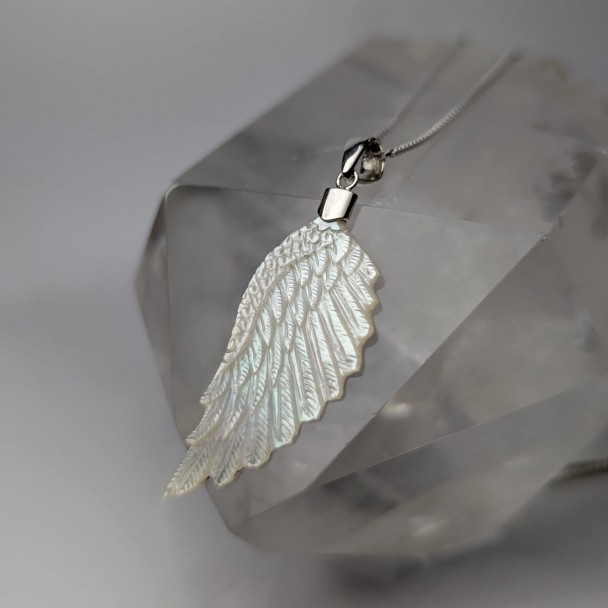 Aquí les comparto nuestro collar de ala de ángel en madre perla. Está diseñado con un gancho en la parte superior de plata 925, destacando su elegancia celestial dejando el ala libre mostrando su propia belleza. Perfecto para añadir un toque de sofisticación a cualquier atuendo, nuestro collar simboliza la protección y la pureza. Regálate o regala a un ser querido una pieza de joyería atemporal.