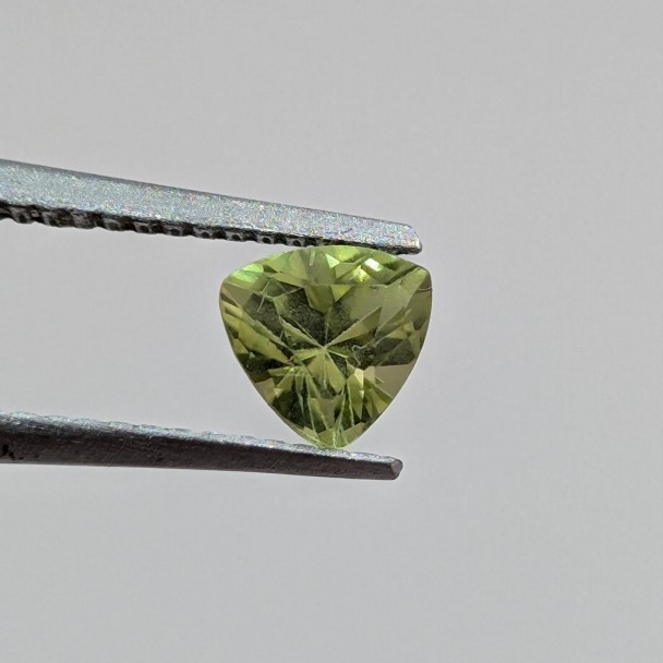 El peridoto, en un tamaño de 4 mm, facetado y de forma trillan, es una gema cautivadora conocida por su vibrante color verde, resultado de su composición de silicato de magnesio y hierro. Formada en el manto terrestre y traída a la superficie por actividad volcánica, su tonalidad, que varía entre verde lima y verde oliva, resplandece aún más con su elegante corte ovalado. Con una dureza de 6.5 a 7 en la escala de Mohs, es ideal para diseños de joyería que combinan sofisticación y un toque de energía positiva.